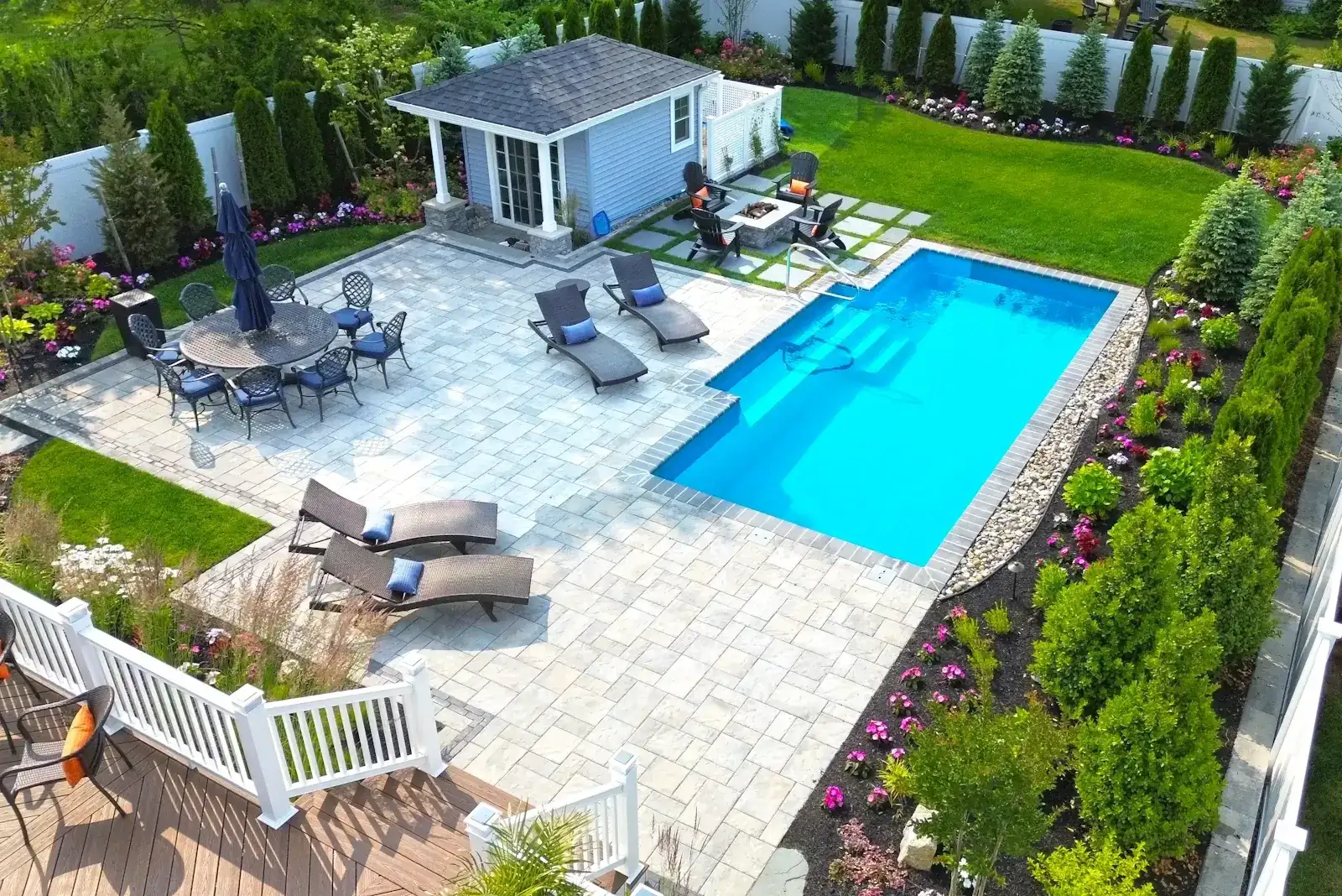 We sequence the work so trades aren't tripping over each other. Pool installation, hardscaping, landscaping, and finishing all flow in the right order. Same project manager throughout.