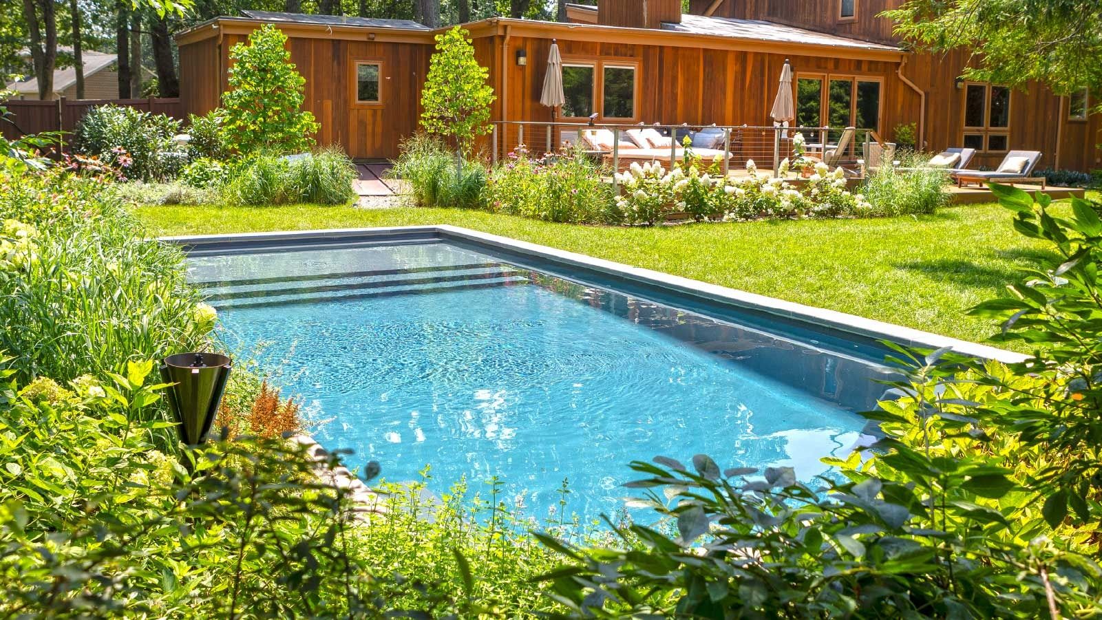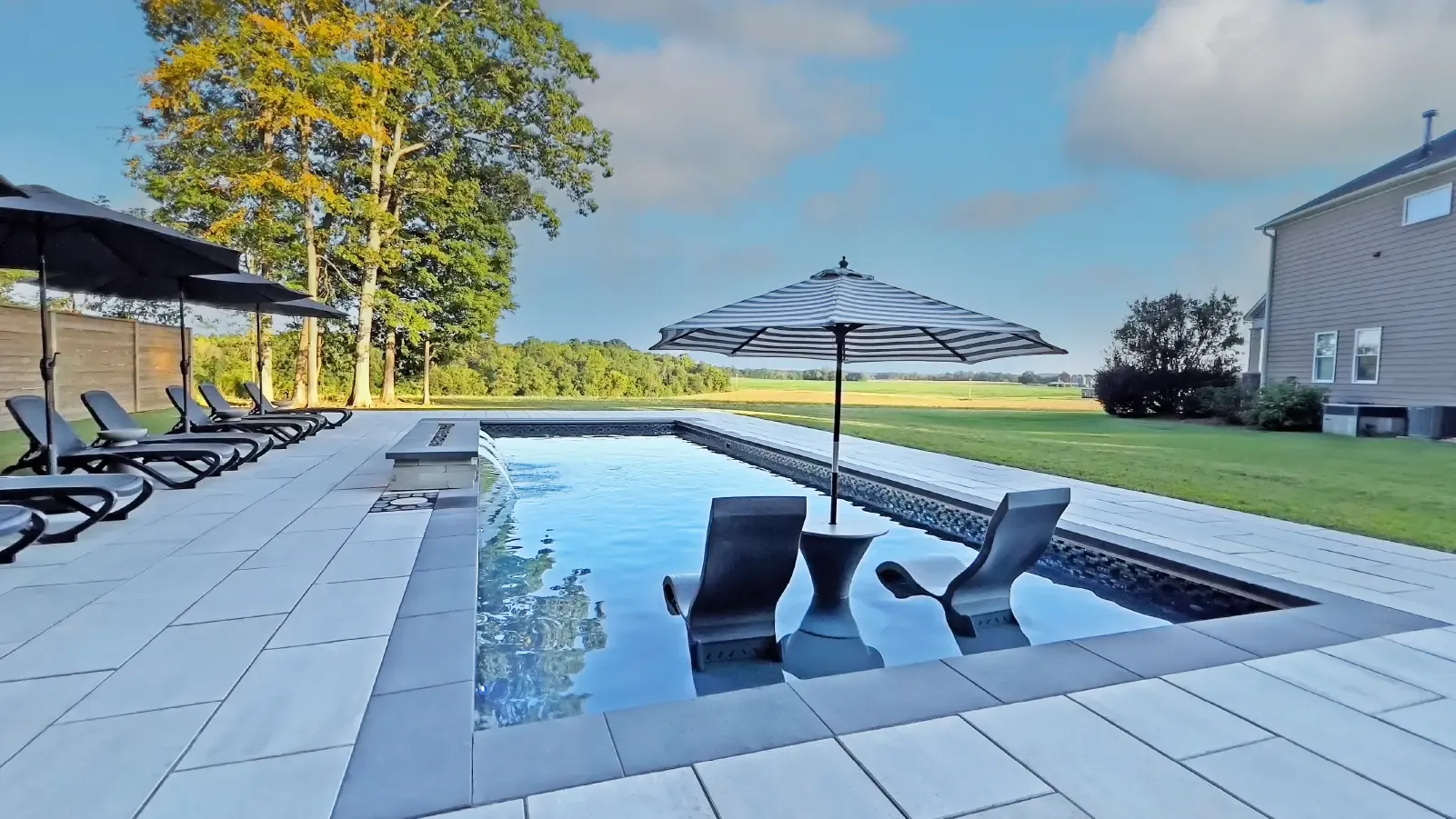 A shallow shelf. Few inches of water. You set a lounger on it and cool off without actually swimming. Parents use them to keep toddlers close. Adults use them because getting wet is optional. These projects show different sizes and placements. Some tucked in corners. Some practically take over the shallow end.